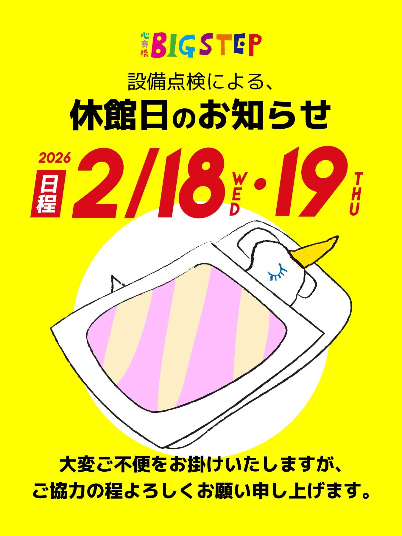 「心斎橋BIGSTEP」休館日のお知らせ2026.01.31 (土)