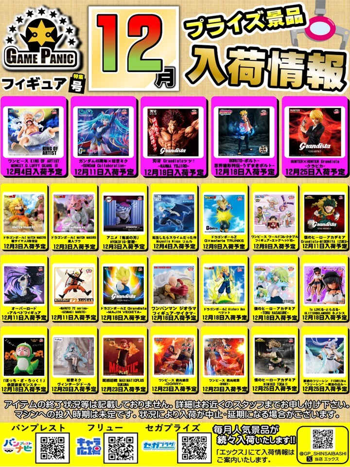 12月プライズ おすすめ!最新景品入荷情報フィギュア号