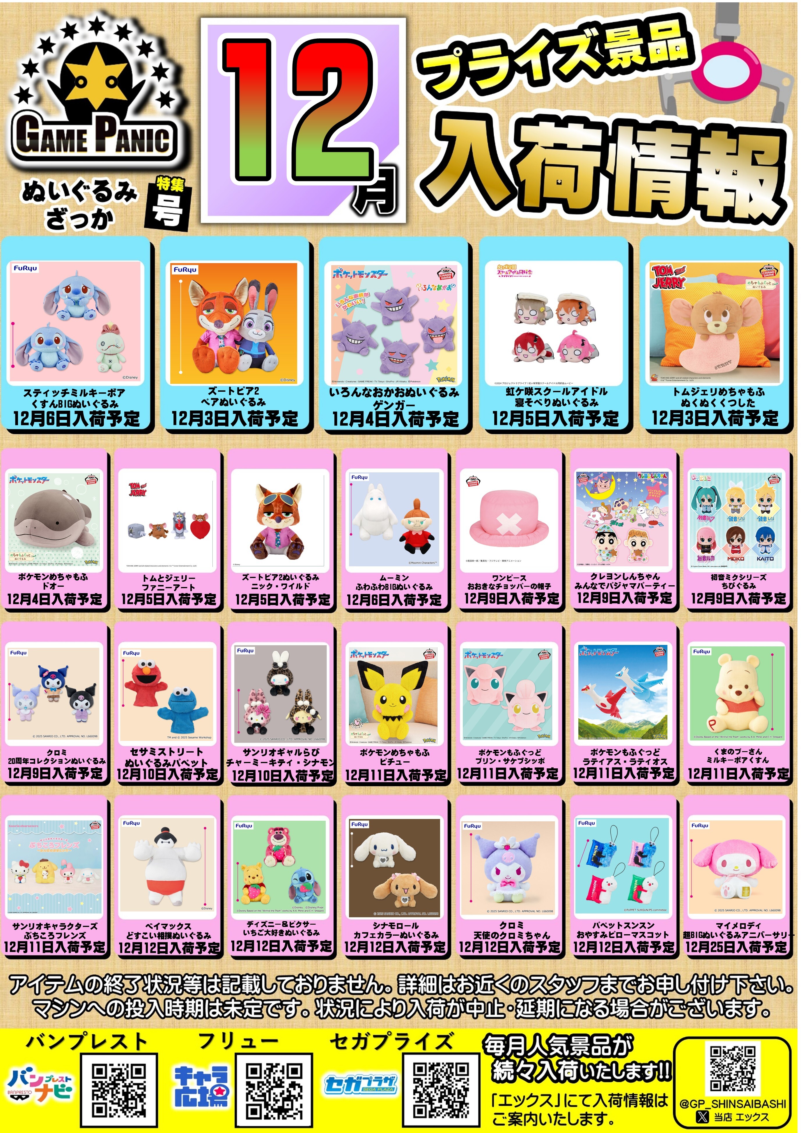 12月プライズ おすすめ!最新景品入荷情報ぬいぐるみ・雑貨号です!