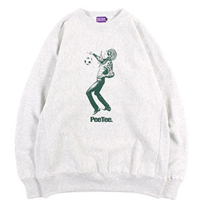 サッカーに興じるレゲエの神様をPUSHIMがドローイングでデザインしたアートワークがWICKEDなクルースウェット。ウォーム感のある12オンスのヘビーウェイトの裏起毛素材を使用した一着。しっかりした強度のあるリブとトレンド感のあるざっくりシルエットが特長。オープンエンド糸の持つ独特の風合いにより、味のある「ムラ感」と「ザラ感」を楽しむことができる仕上がりで着込むほどにエイジングを楽しめます。身頃の生地目は横取り、脇下はリブ生地のサイドパネルのリバースウィーブ仕様。アメリカンクラシックな装いのストリートスタイルにマストなユニセックスでおすすめのアイテム。