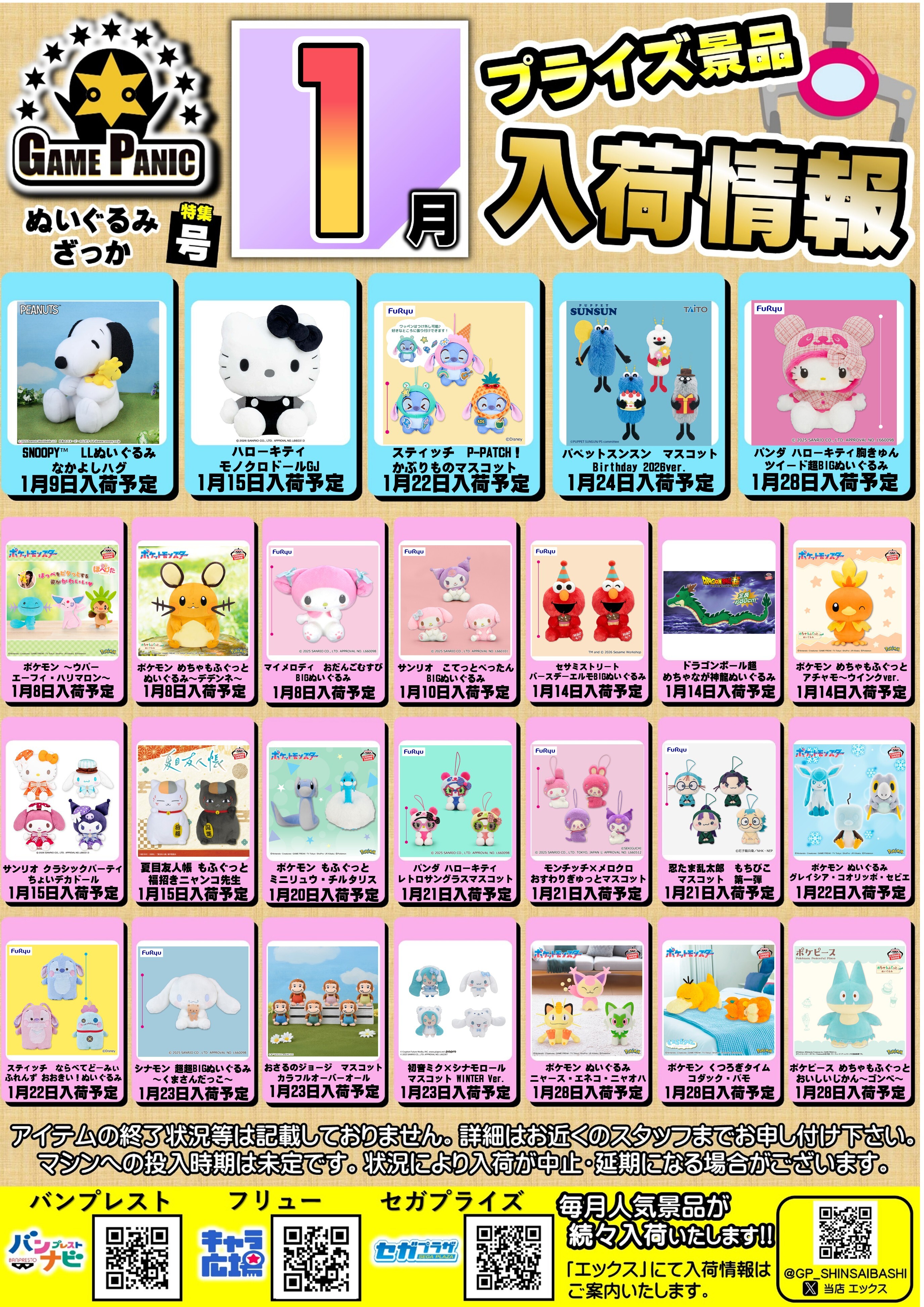 1月プライズ おすすめ!最新景品入荷情報ぬいぐるみ・雑貨号です!