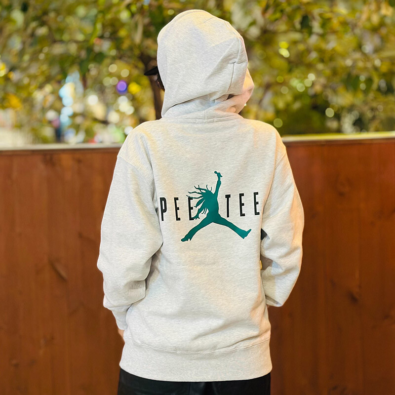 PeeTee.の人気アイコンを左胸、バックにオンしたプルオーバーパーカー!