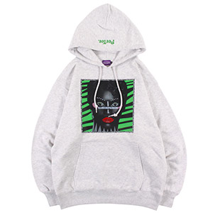PUSHIMデザインのフロントグラフィックスが存在感抜群のプルオーバーパーカー。フード部分にグルーピーロゴを刺繍しました。通常よりも太い糸で重厚感のある仕上がりの12.7オンスのヘビーウェイトな裏パイル地を採用。ざっくりとしたサイジングが特長でリラックスして着用でき、デイリーユースで大活躍するユニセックスアイテムです。