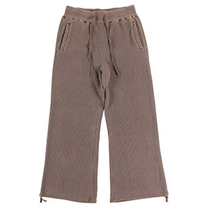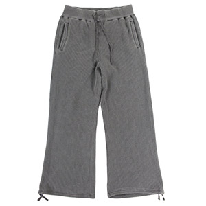 綿100%のワッフル生地とボリュームあるマイクロフリースを圧着した素材を使用したヘビーウェイトのスウェットパンツ。