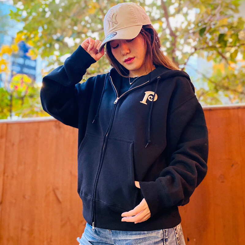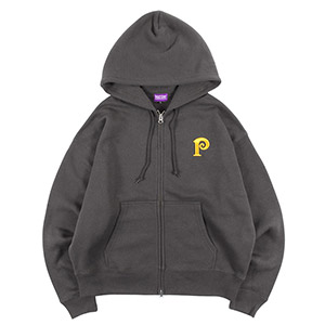 胸元にPEE LOGOを刺繍したウォーム感ある裏起毛ジップフード!