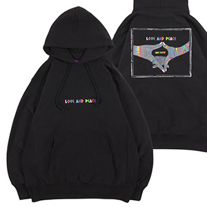 JAHを讃えるラブアンドピースでラスタなハンドサインをバックにデザインしたフーディー。ウォーム感のある12オンスのヘビーウェイトの裏起毛素材を使用した一着。しっかりした強度のあるリブとトレンド感のあるざっくりシルエットが特長。オープンエンド糸の持つ独特の風合いにより、味のある「ムラ感」と「ザラ感」を楽しむことができる仕上がりで着込むほどにエイジングを楽しめます。身頃の生地目は横取り、脇下はリブ生地のサイドパネルのリバースウィーブ仕様。アメリカンクラシックな装いのストリートスタイルにマストなユニセックスでおすすめのアイテム。