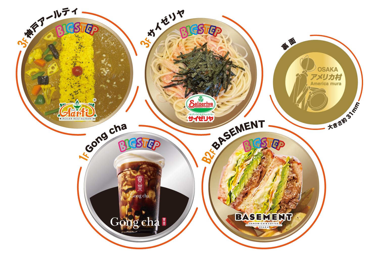 ビッグステップ館内の対象の飲食店で、3,000円以上のご飲食で各店のオリジナル記念メダル(茶平工業製)をプレゼント!