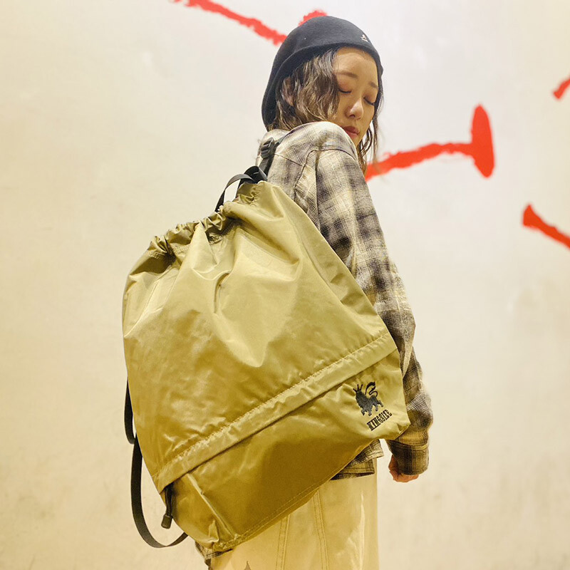 適度な光沢と厚みのある420デニールナイロンを採用した軽量でタフな仕上がりのナップサック。
