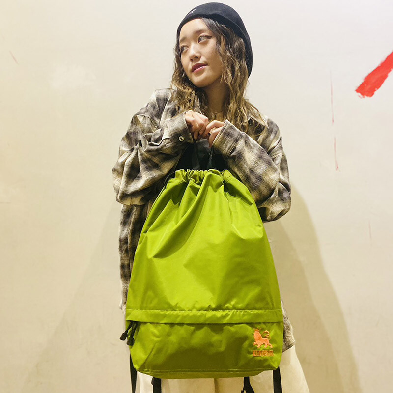 肩紐を背負いやすい長さに調整可能で、前面ポケットに財布やスマホなど小物の収納できるよう、日常で使いやすいディティールをプラスしたナップサック。LIONロゴをワンポイントで刺繍しました。本体開口部、ポケット開口部が広く収納物を出し入れしやすくなっています。上部の取っ手で、普通の手提げバッグ的な使い方も可能なユニセックスでおすすめのアイテム。