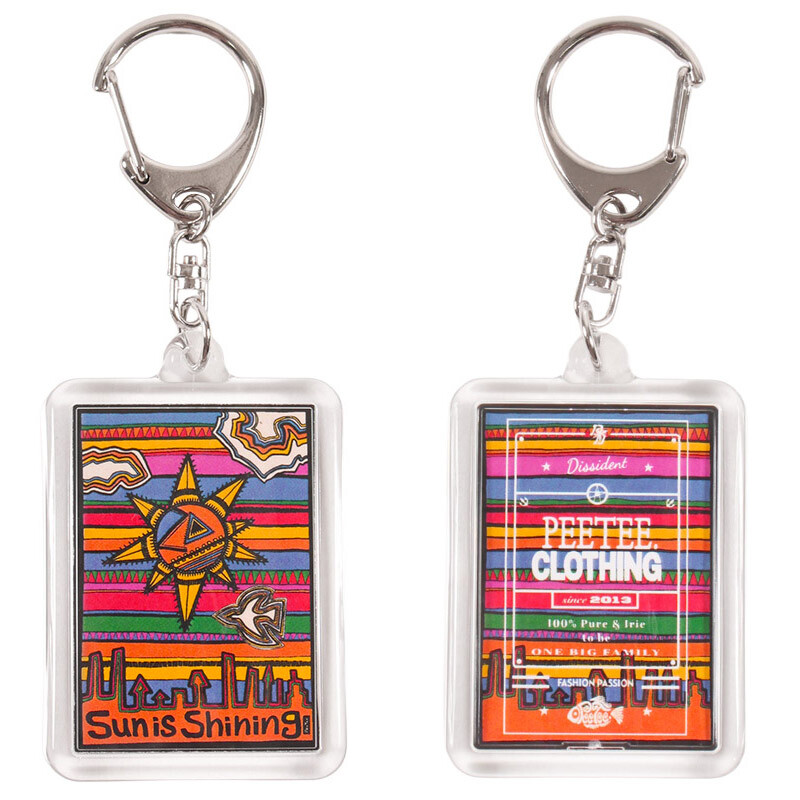 片面にポップでネイティブなグラフィックスがWICKEDなデザインを、片面にタグロゴをオンしたアクリルキーホルダー。