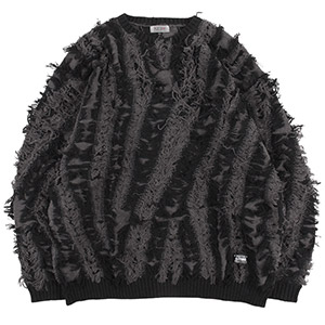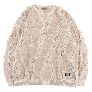 編み地の凹凸に加えフリンジで動きを出したジャガードニット!!