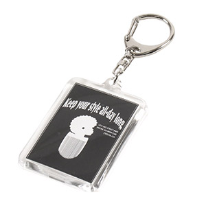 片面にアフロガールのコームデザインを、片面にタグロゴをオンしたアクリルキーホルダー。