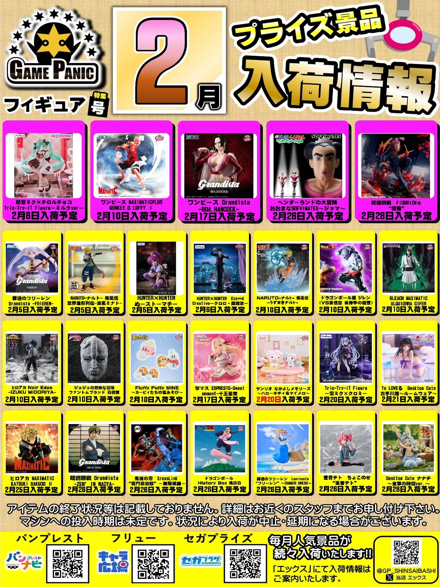 2月プライズ おすすめ!最新景品入荷情報フィギュア号