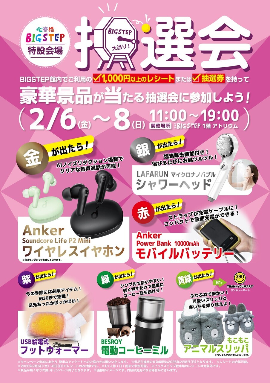 ビッグステップ館内でご利用の1,000円以上のレシート